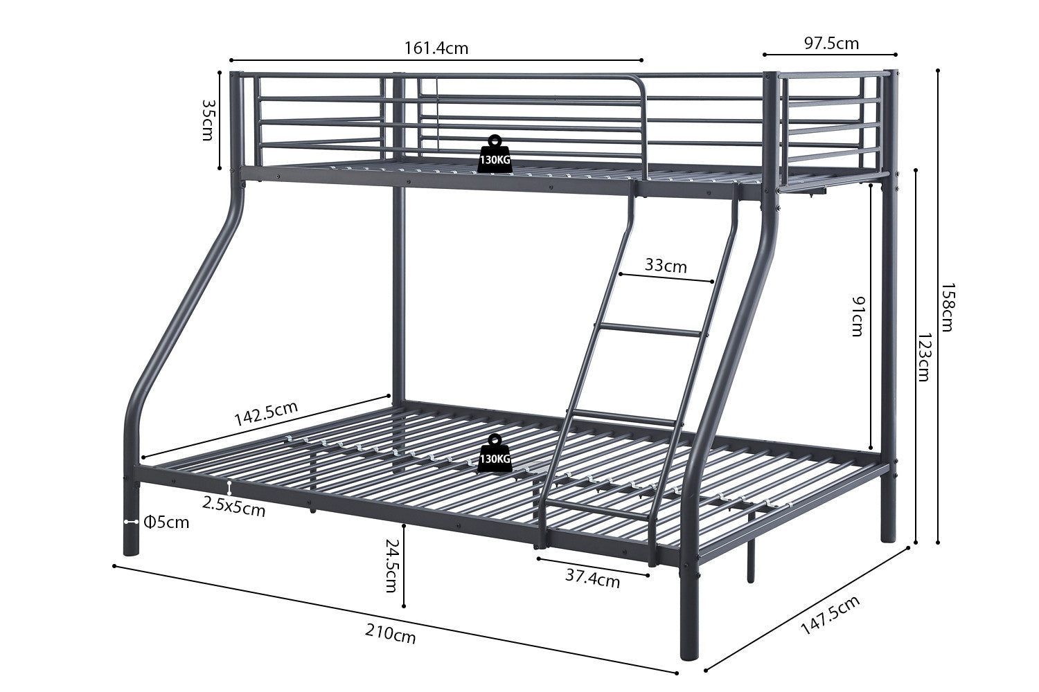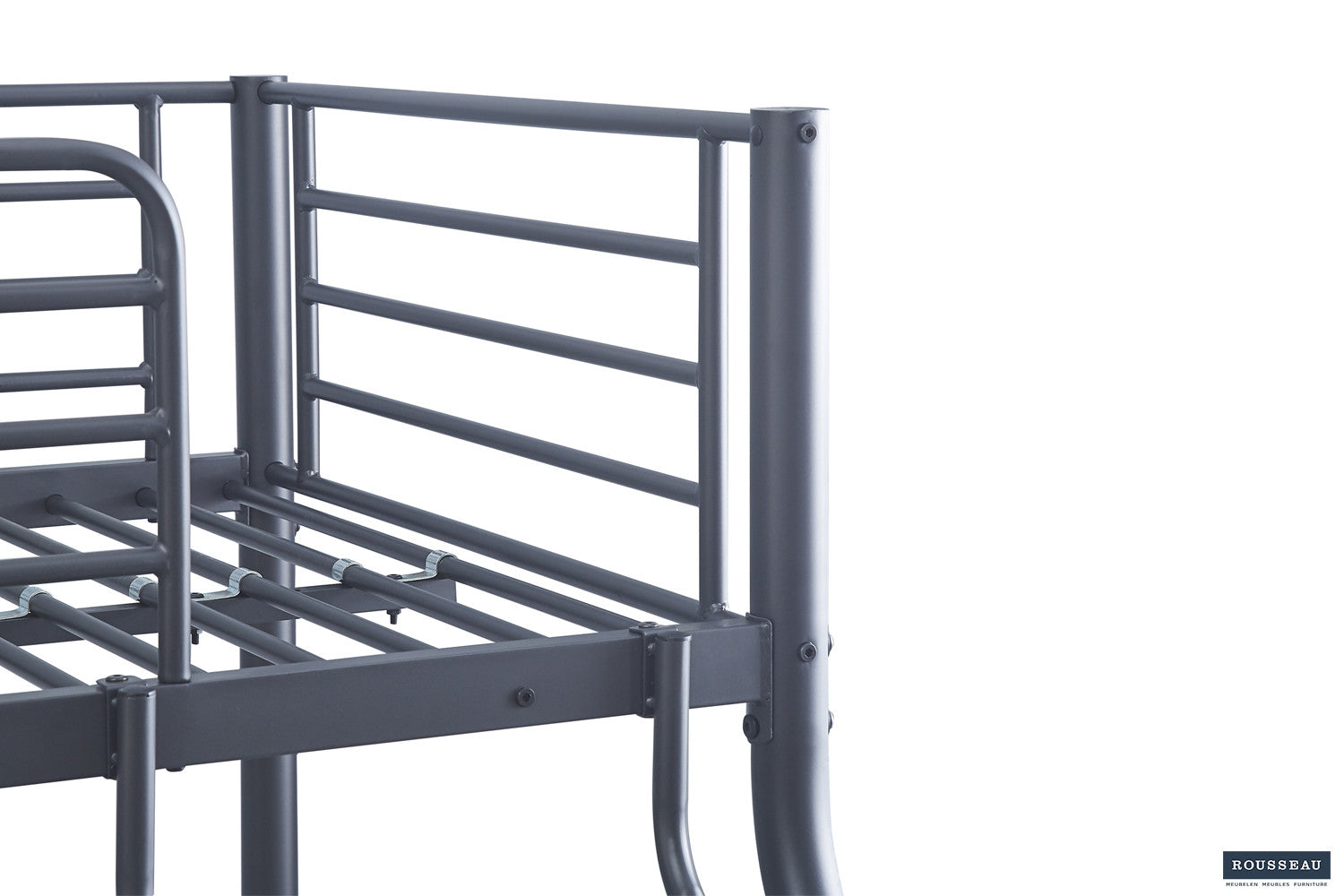 Rousseau - Lit superposé Trio métal 140/90x200 Gris foncé - 158x147,5x210 cm