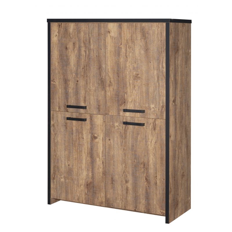 Optez pour ce nouveau meuble bar de style industriel au décor chêne aux accents noirs. Un meuble bar, avec 4 portes pleines et 2 étagères des deux côtés.