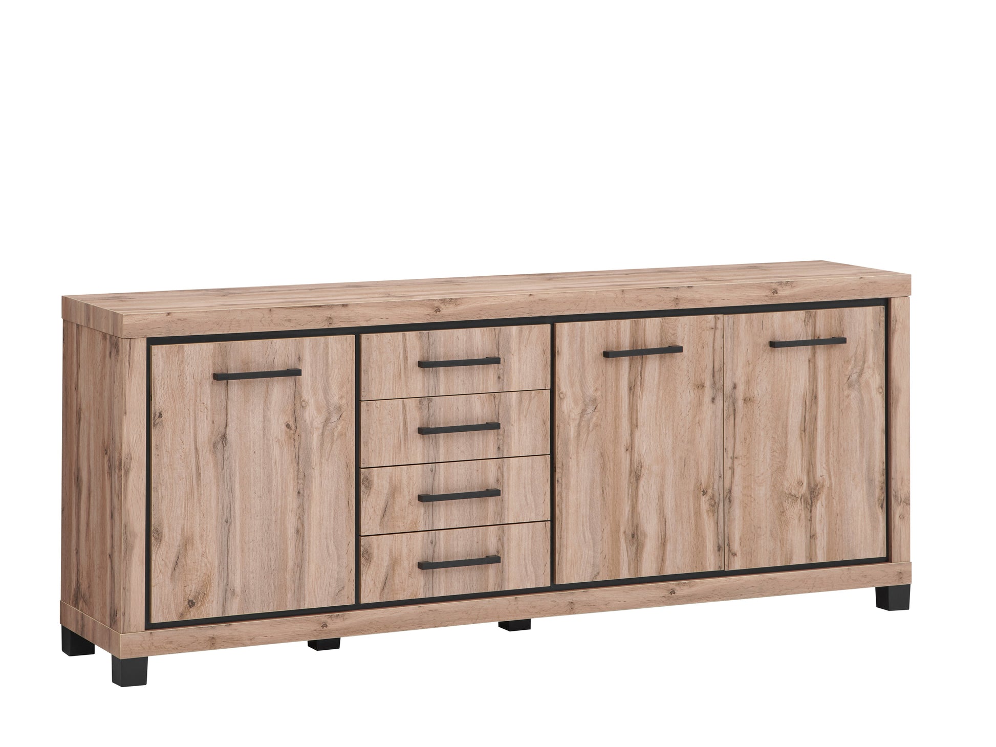 Cet élégant buffet Opera de couleur chêne Canada offre un espace de rangement pratique avec 3 portes et 4 tiroirs.