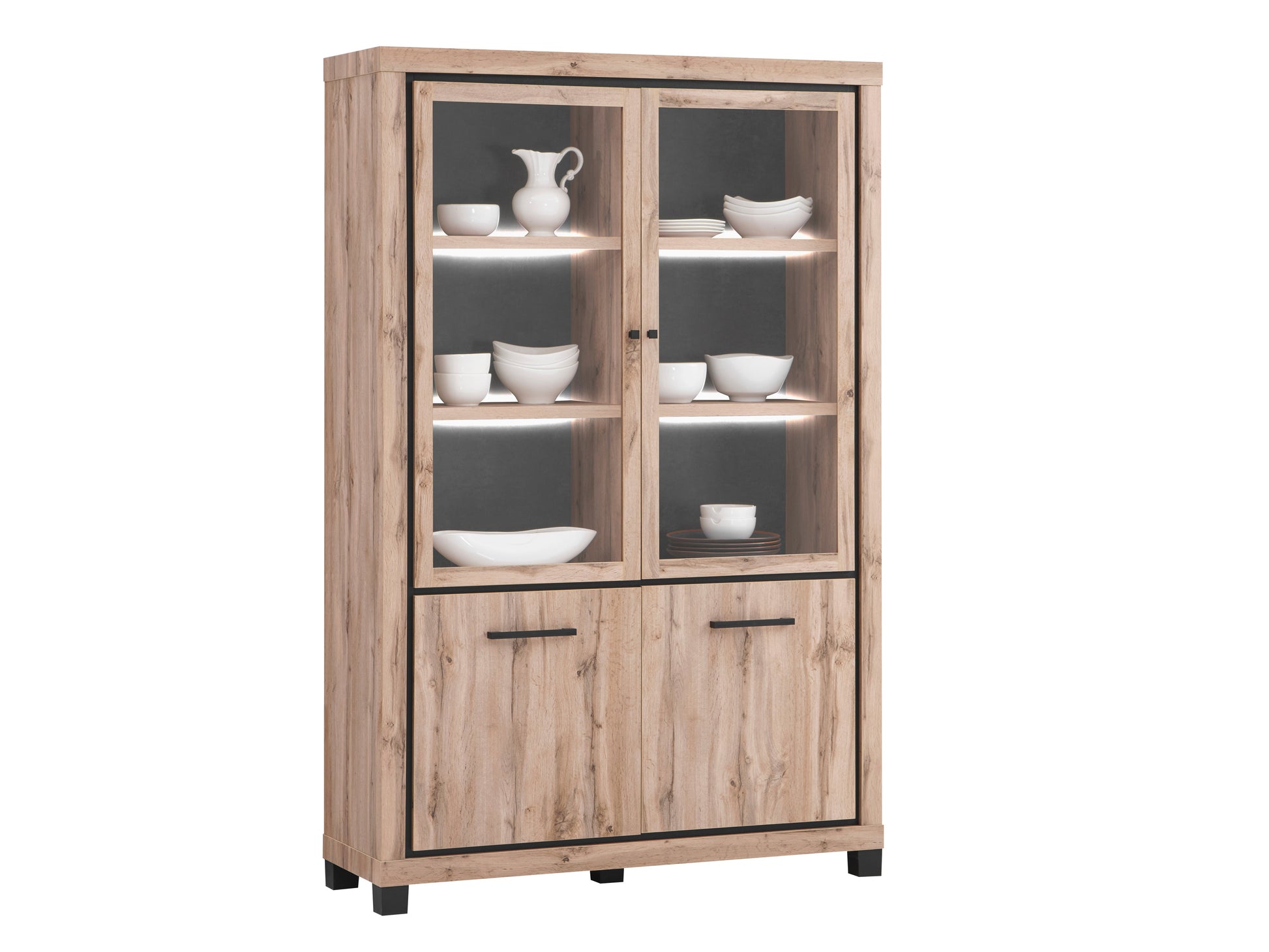 Cette élégante vitrine Opera de couleur chêne Canada possède 2 portes pleines et 2 portes vitrées, idéales pour le rangement et la présentation. L'éclairage LED intégré fait ressortir magnifiquement vos plus belles décorations