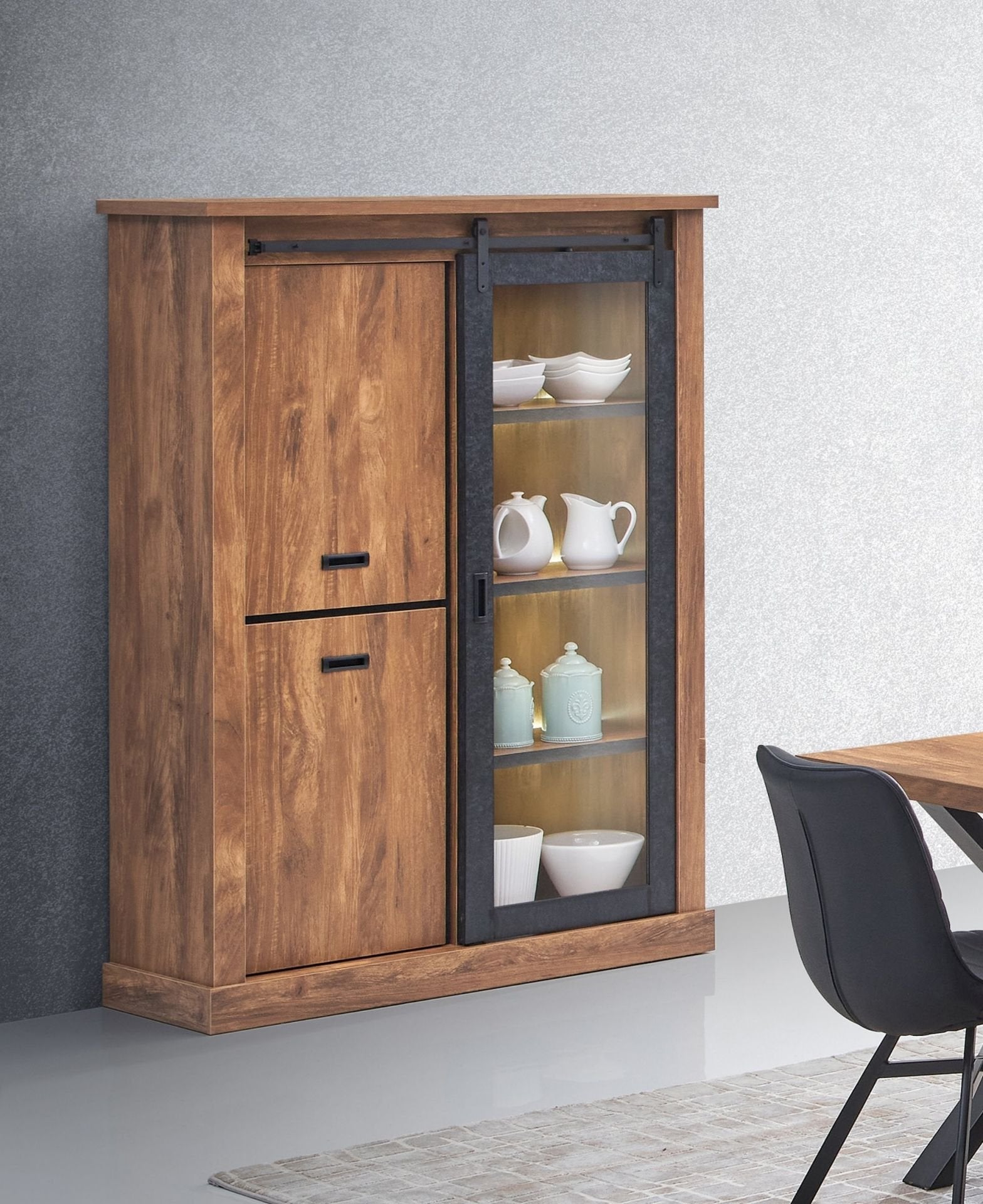 *meuble bar avec 2 portes pleines et 1 porte vitrée