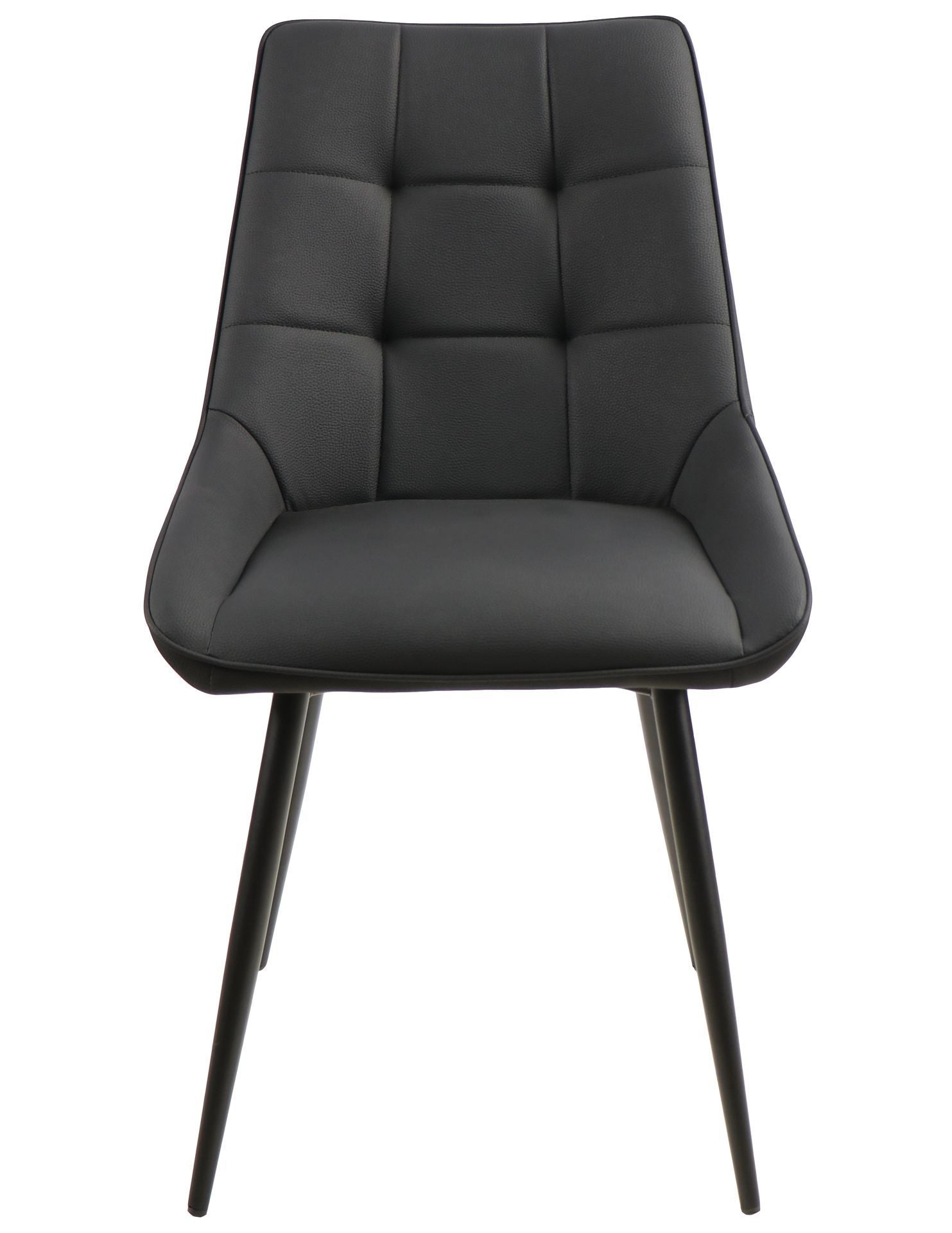 Comfortabele eetkamerstoel in PU-leer met zwarte, konische poten. Handig detail: een stevige handgreep aan de achterkant voor eenvoudig verplaatsen.