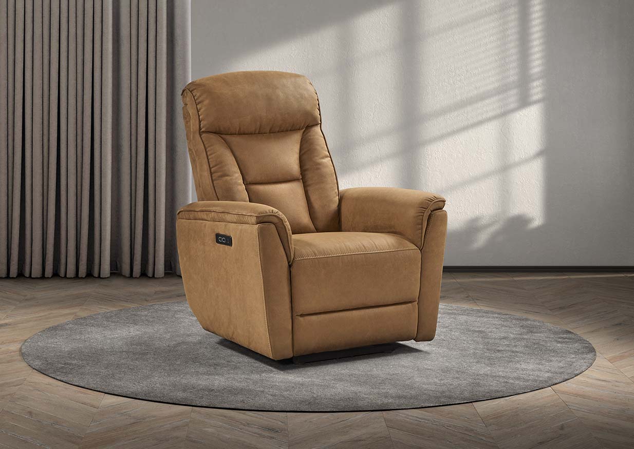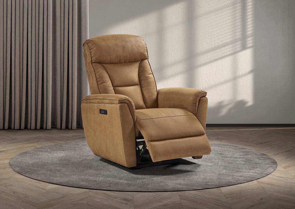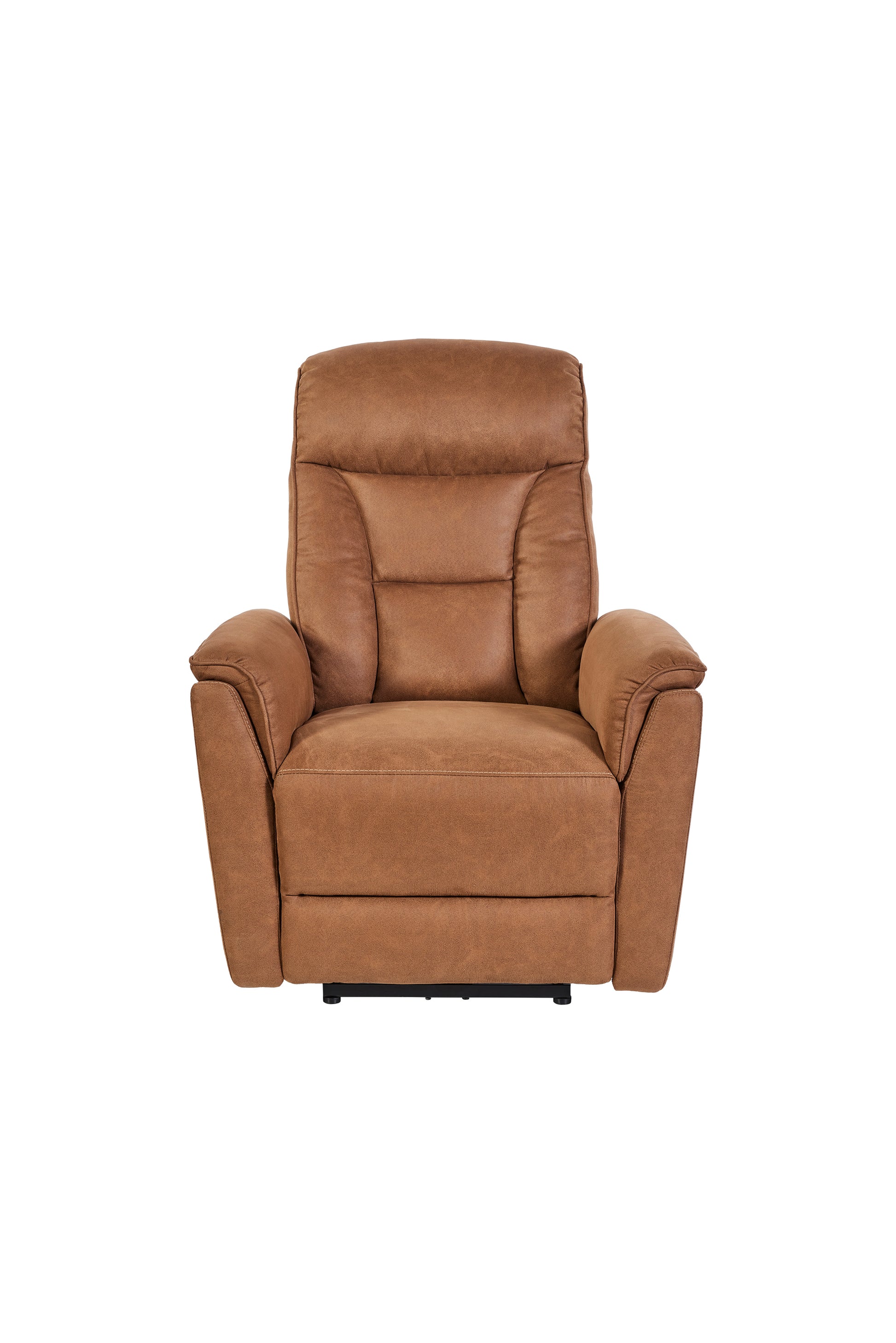 Hoogwaardige cognac stof, twee motoren: liftfunctie en relaxfunctie en een elegant design met eenvoudige bediening