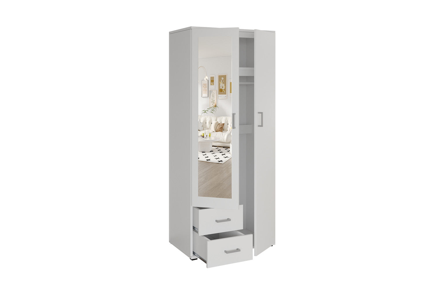 Kleerkast 'Marc' 2 deuren met spiegel Wit