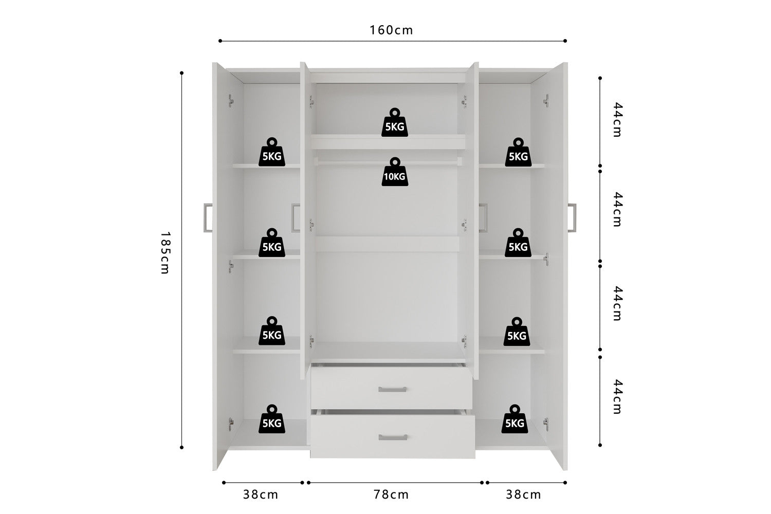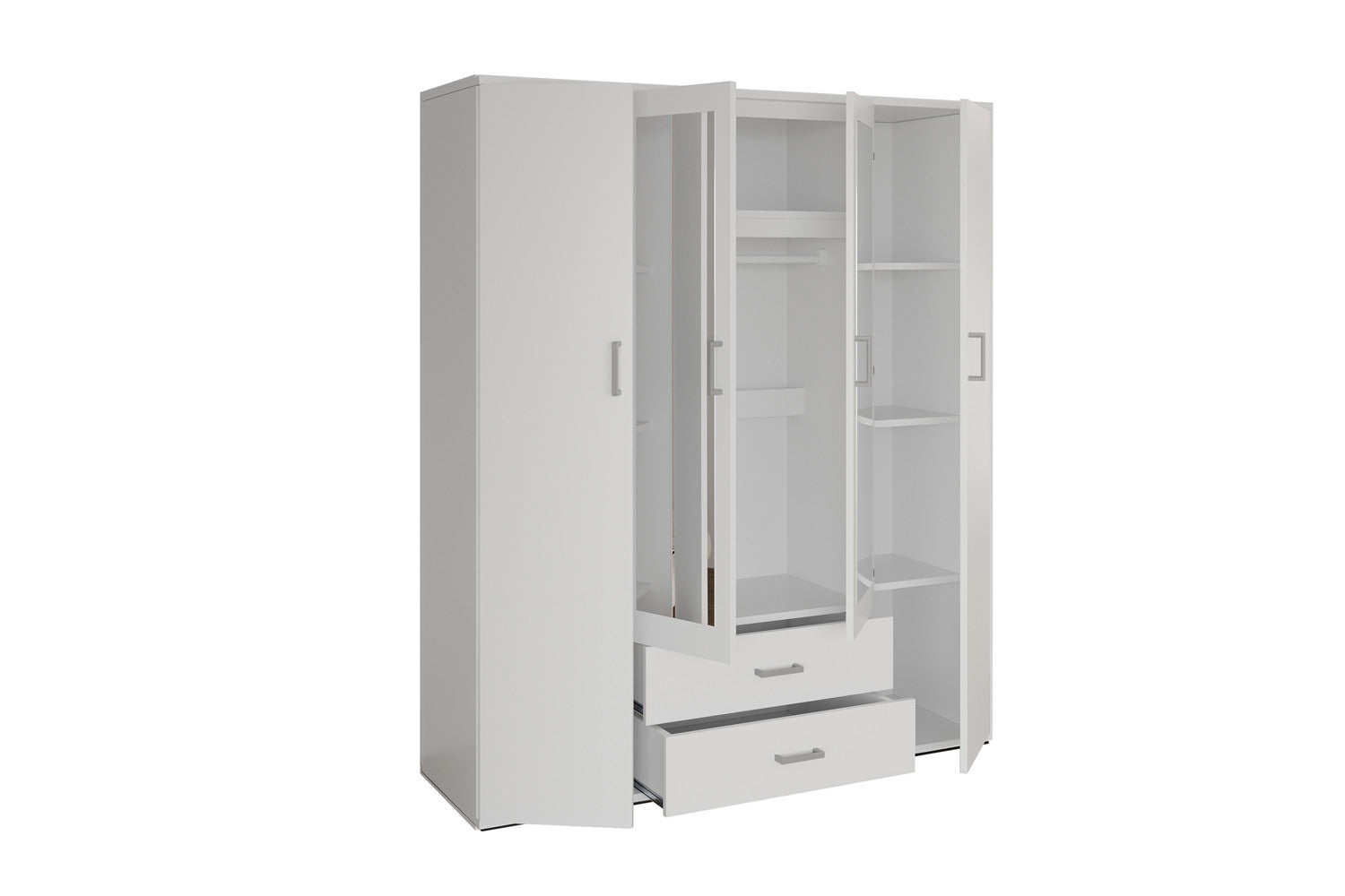 Kleerkast 'Marc' 4 deuren met 2 spiegels Wit