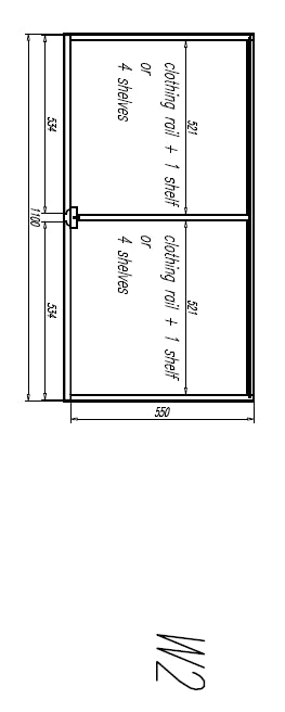 LARA 2-deurs kledingkast, wit gelakt MDF met massief grenen; links garderoberoede en legplank, rechts 4 legplanken; horizontaal gefreesd detail; soft-close. Modern, geproduceerd in Polen.