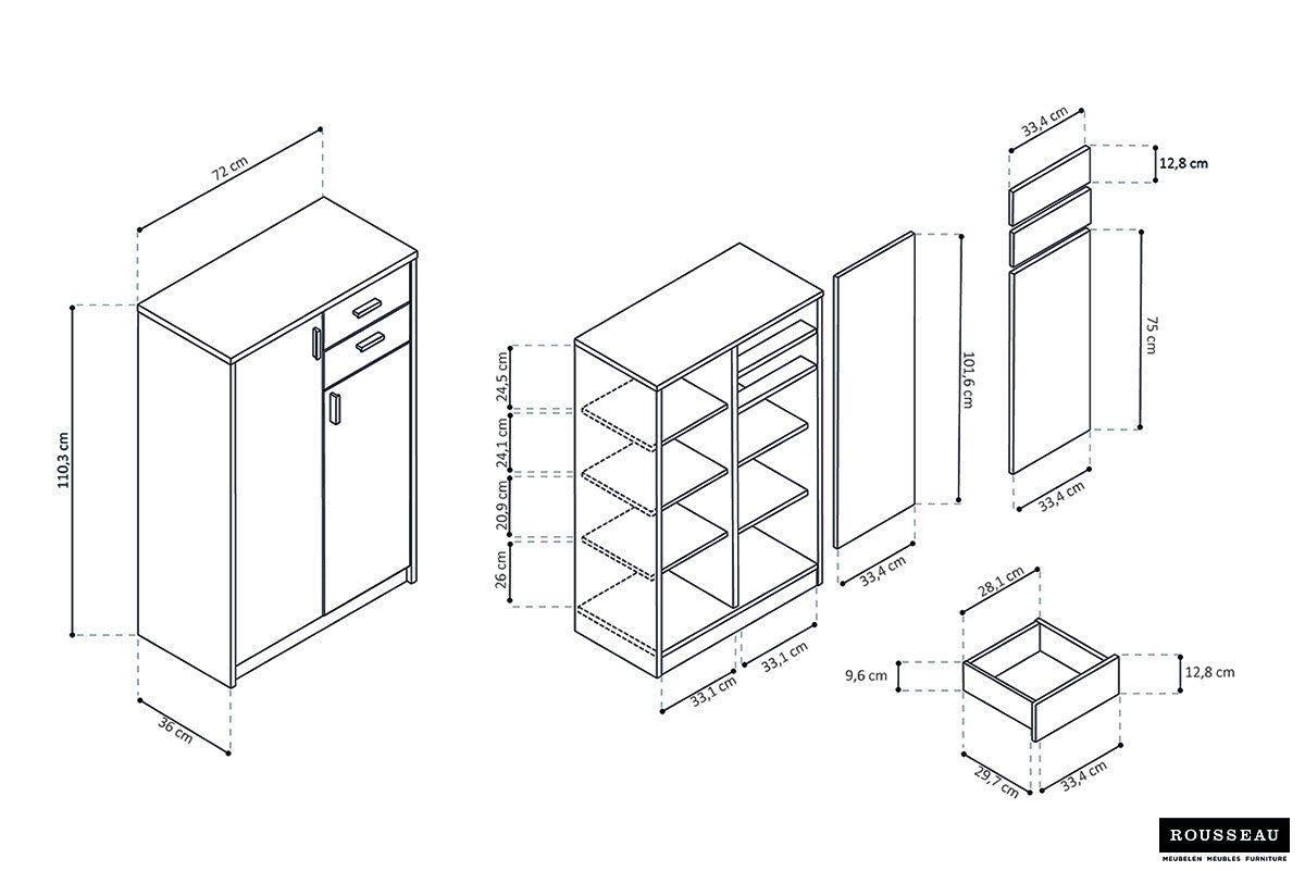 Rousseau - Commode Space 2 deuren 2 laden Sonoma - 110x72x36 cm