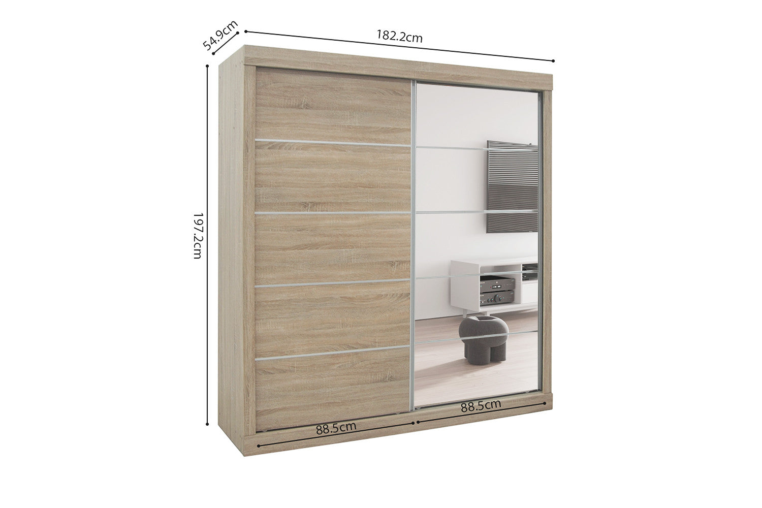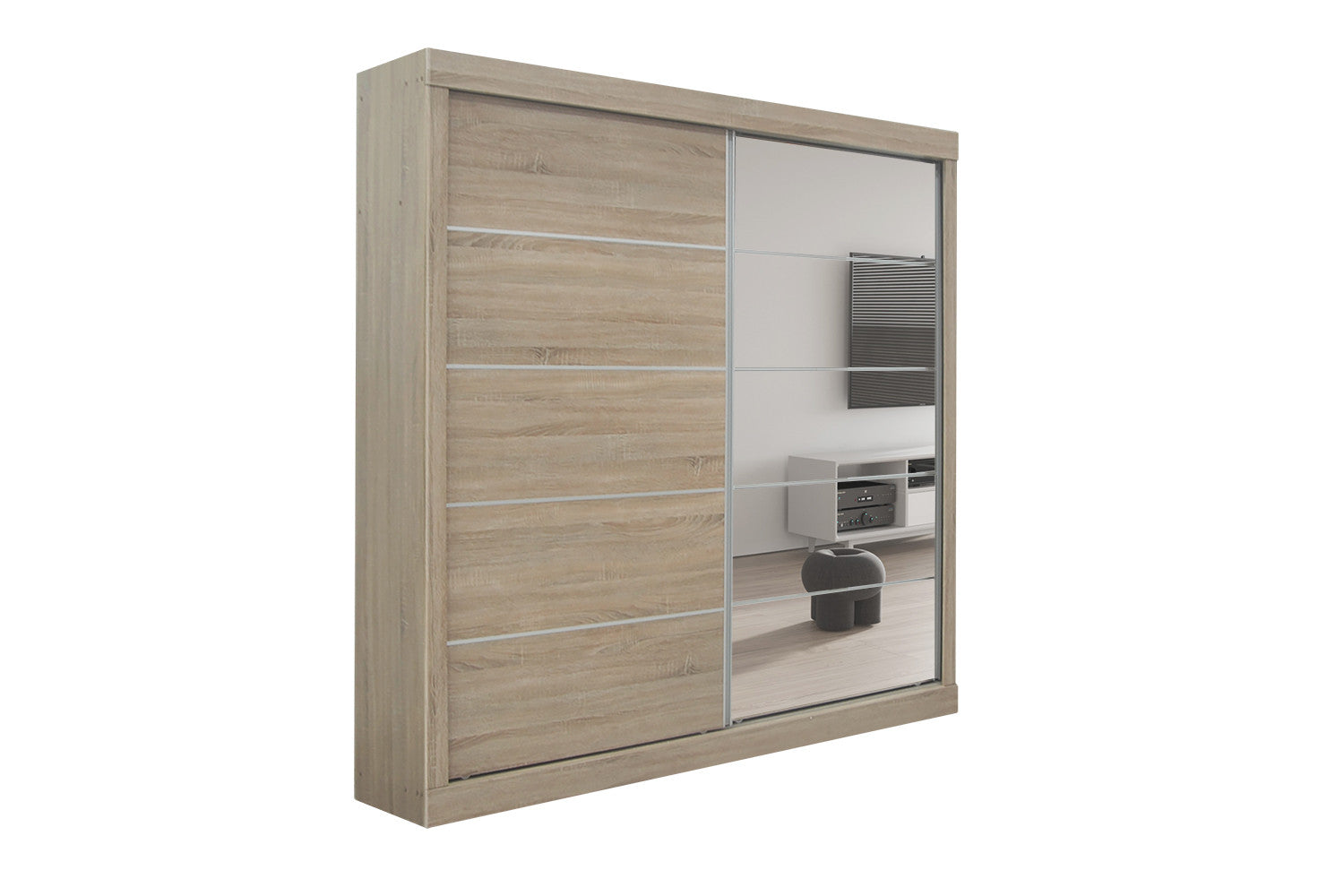 Rousseau - Kleerkast Mike 2 Schuifdeuren, 1 Spiegeldeur Sonoma - 197.5x182.5x52.5 cm