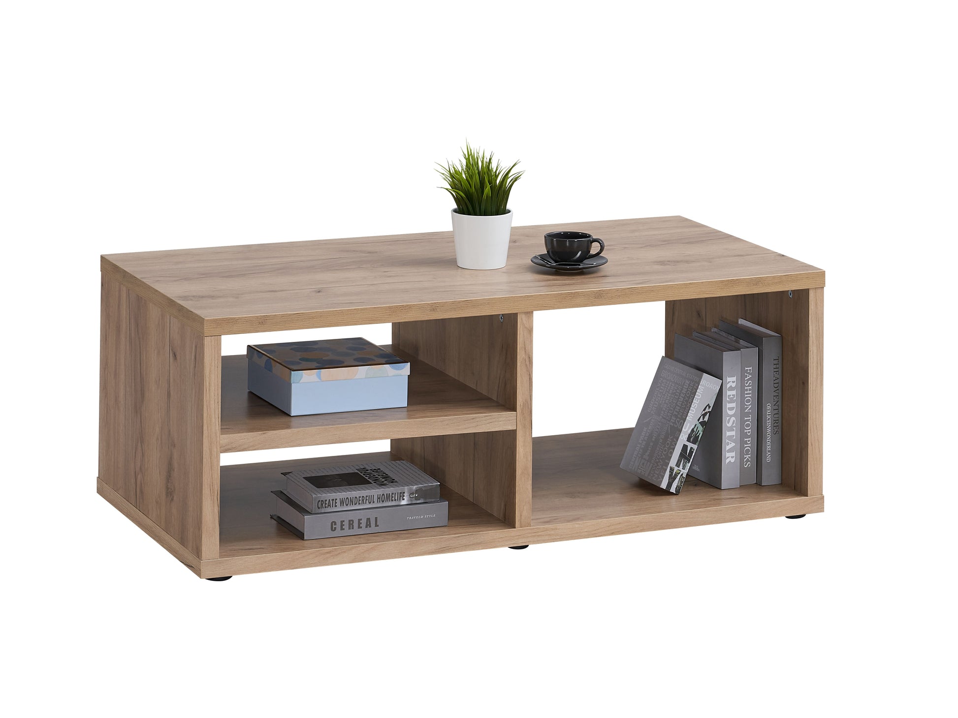 Kies deze moderne salontafel met legplank in franse eik decor. Een goedkope salontafel met prachtige poot. Uw nieuwe salontafel in french oak decor zal een mooie toets geven aan uw woonkamer. Deze salontafel komt in pakketten en heeft een eenvoudige montage dankzij het duidelijke montageplan.