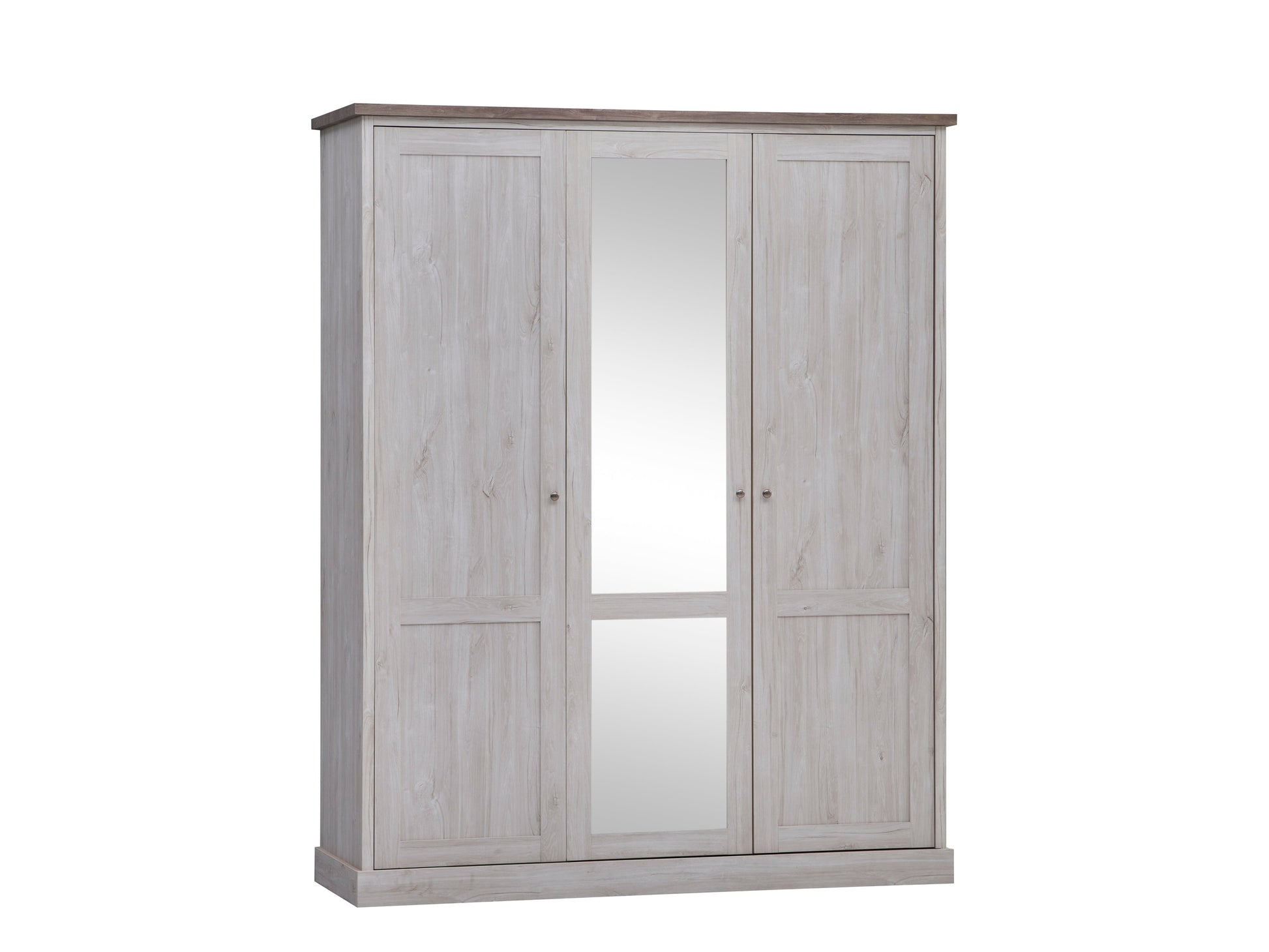 Een 3-deurs kleerkast Oakley met twee volle deuren en spiegeldeuren in de midden combineert elegantie met functionaliteit, perfect voor een sfeervolle en georganiseerde slaapkamer.